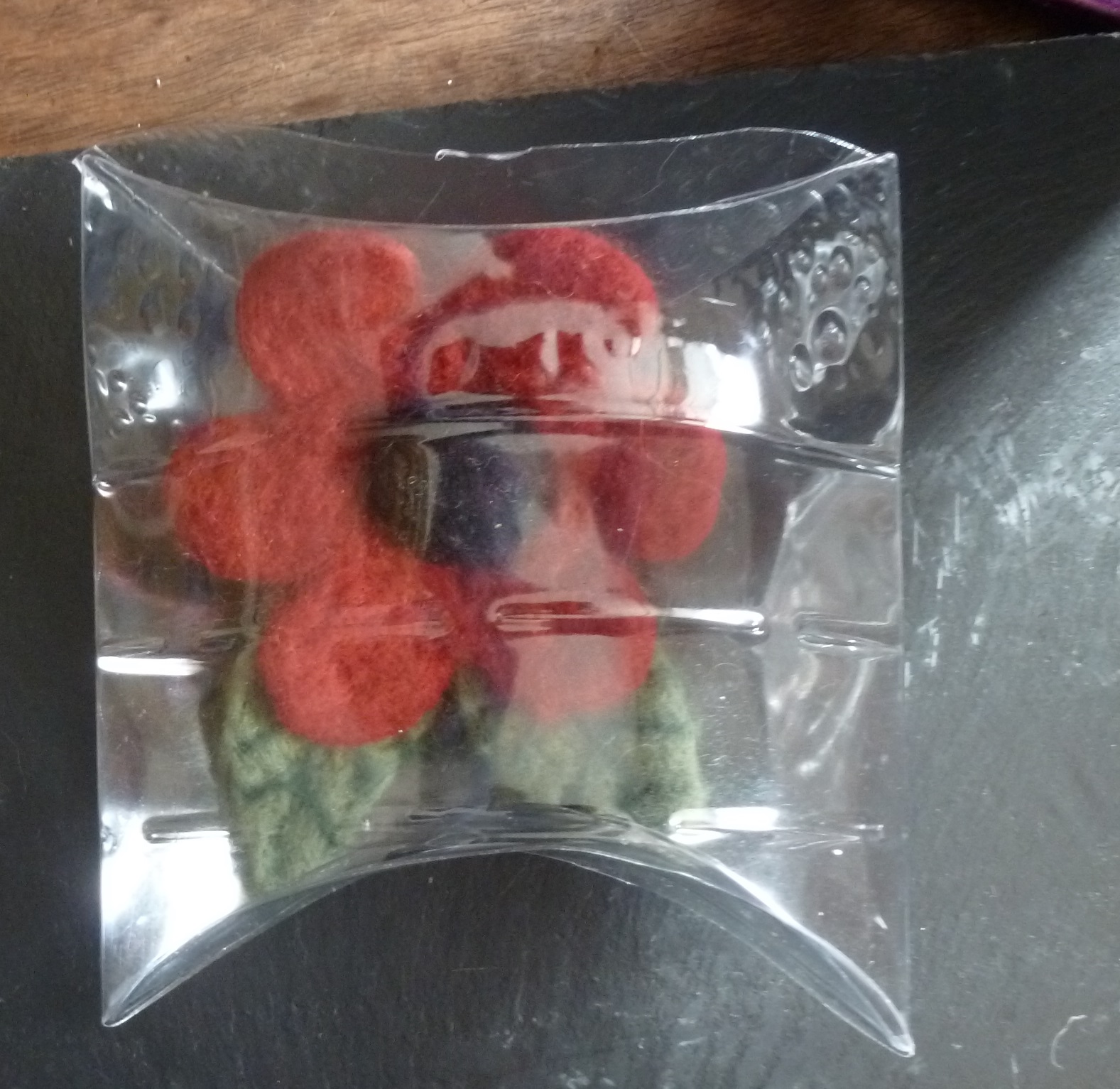 We have been looking for a way to display our felt creations in shops, and markets, which allows people to see the item and pick it up without getting it dirty. We had been using plastic sleeves designed for greeting cards. But this seemed like a waste.