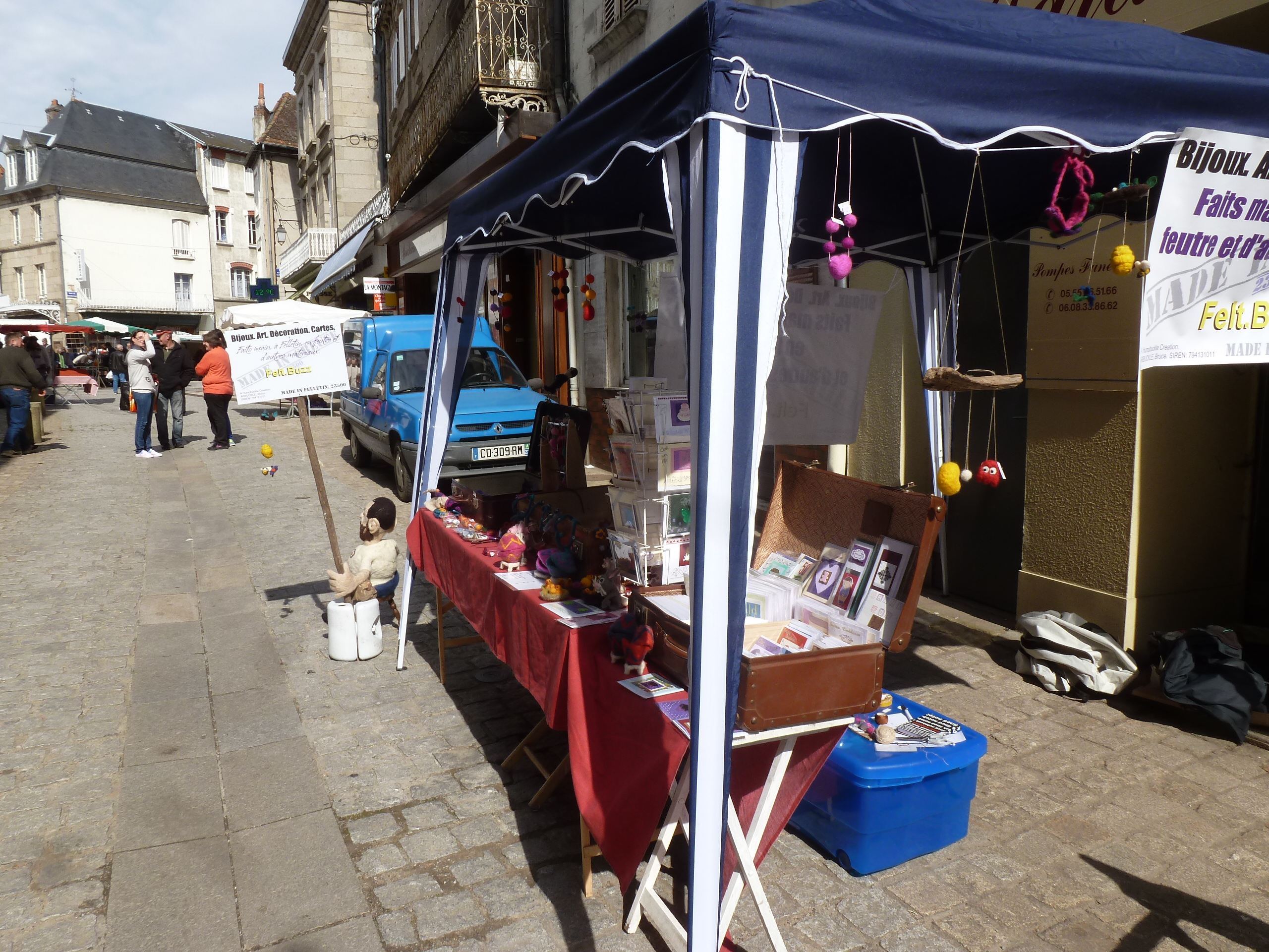 We have a stall at Felletin market (every Friday morning). You can find us near the old florist shop in La Grande Rue. Come and buy presents for Easter: felt eggs, chicks and rabbits. See you next Friday!